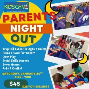 Drop off event for ages 3+ Pizza & juice for dinner! Open Play Social Skills Lessons Group Games Arts & Crafts!