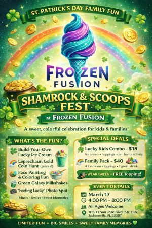 WHAT’S THE FUN? Build-Your-Own Lucky Ice Cream Leprechaun Gold Coin Hunt (prizes!) Face Painting & Coloring Fun Green Galaxy Milkshakes ...
